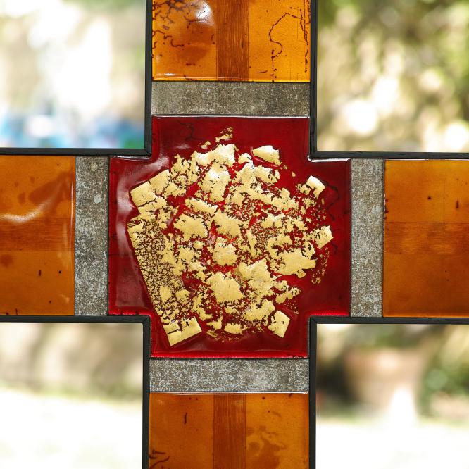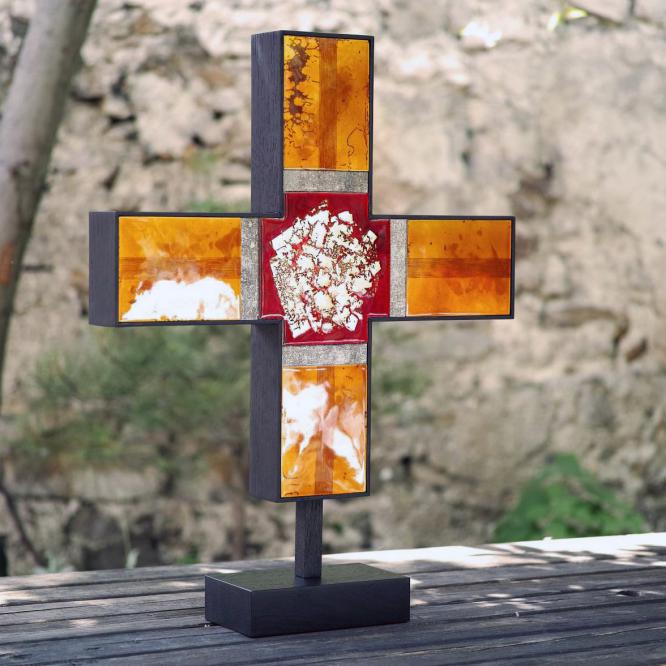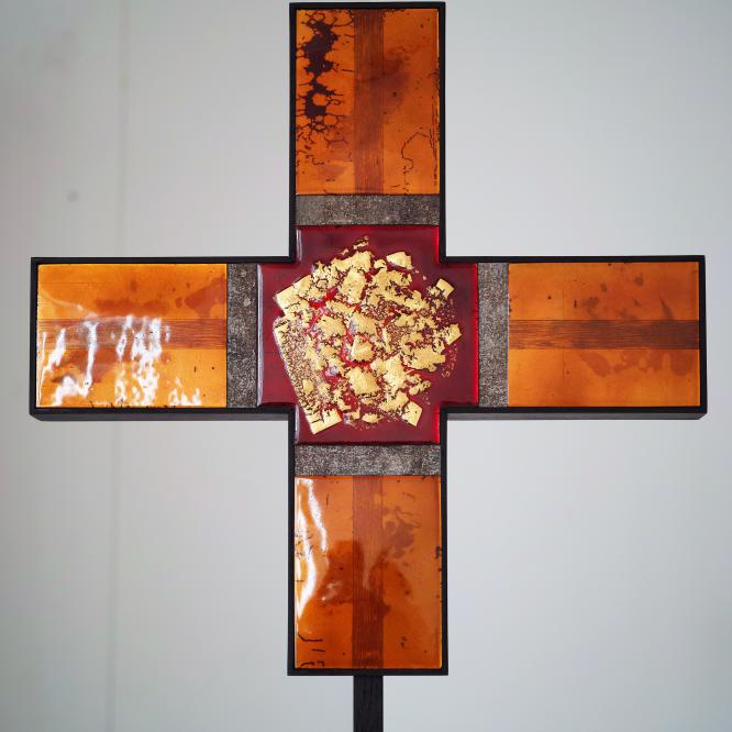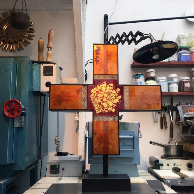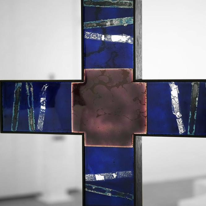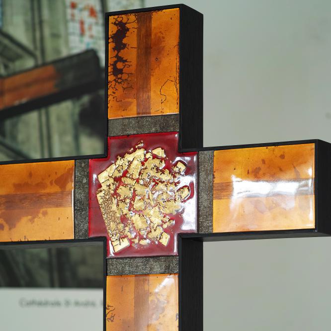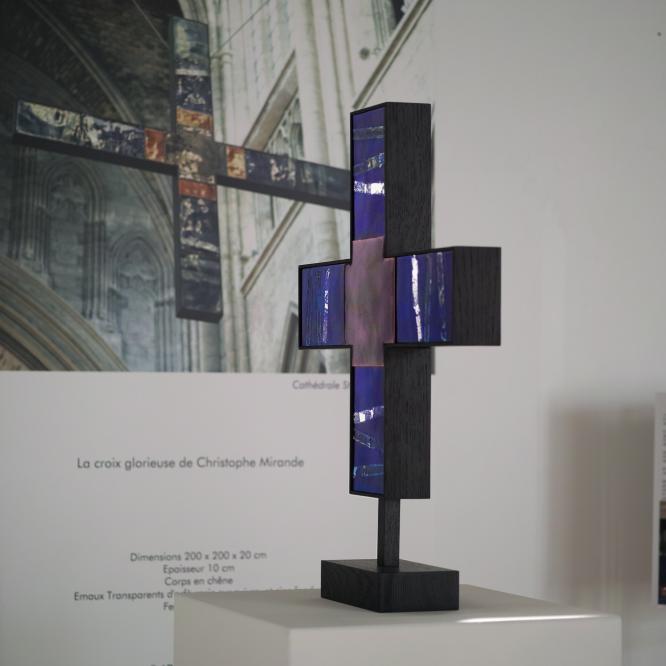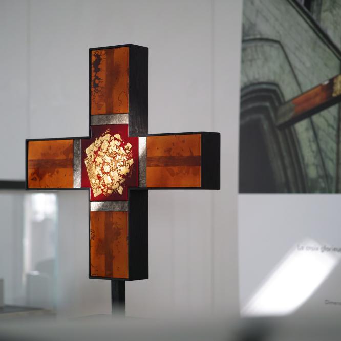 Dans le cadre de ce concours, exposition autour de la Croix Glorieuse de la cathédrale de Bordeaux au musée de la toile de Jouy, à Jouy en Josas, du 10 juillet au 8 septembre 2020. Réalisée pour cette occasion, la Croix Glorieuse II est présentée ; réinterprétation et transposition de celle de Bordeaux. Crédit photographique © Christophe Mirande