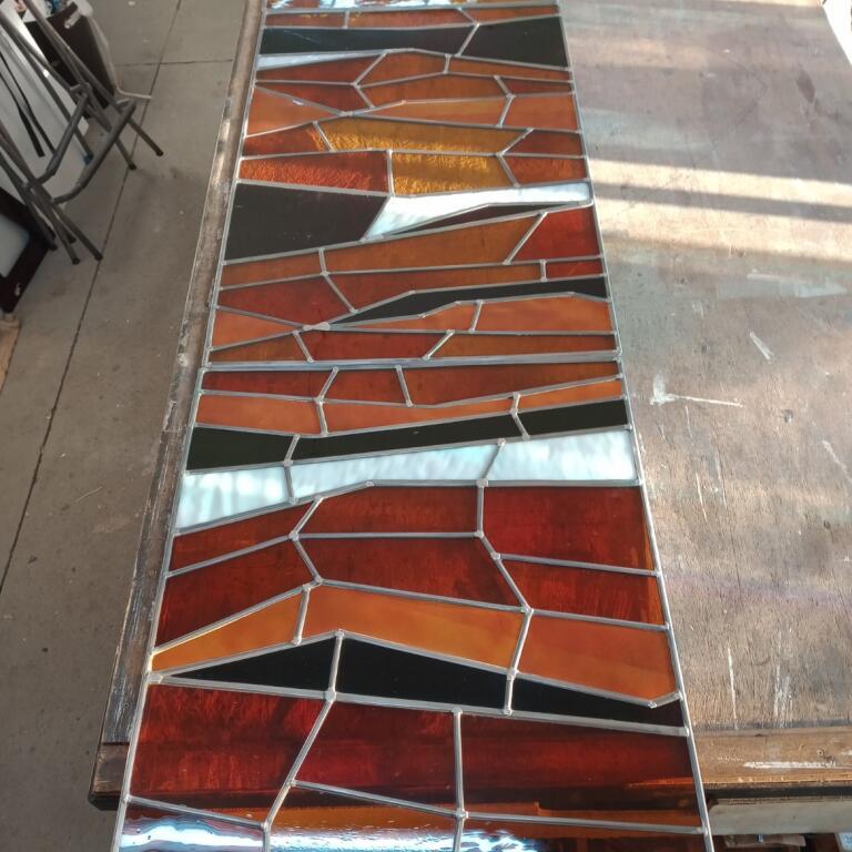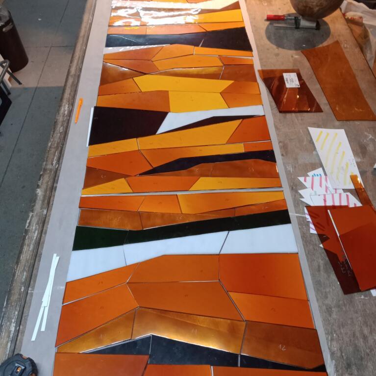 Le fait d’inclure des plaques de cuivre émaillées dans ce vitrail est pour moi source d’une double satisfaction ; la satisfaction de l’artiste plasticien qui aime avant tout concevoir, sans limite de savoir-faire, les projets qui lui passent par la tête, et la satisfaction de l’artisan qui aime également travailler ses matières de prédilection et les utiliser dans ses propres créations.
