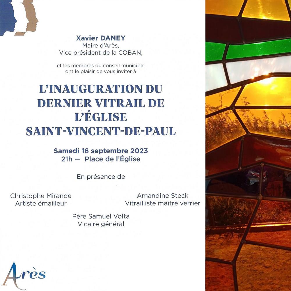 Lorsque je suis venu à Arès il y a un an à peine, il s’agissait pour moi d’inaugurer la mise en lumière des vitraux créés par mon père pour l’église Saint Vincent de Paul.