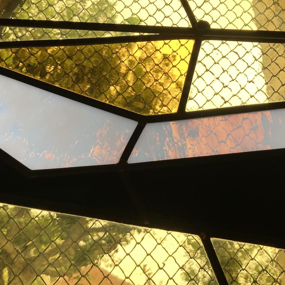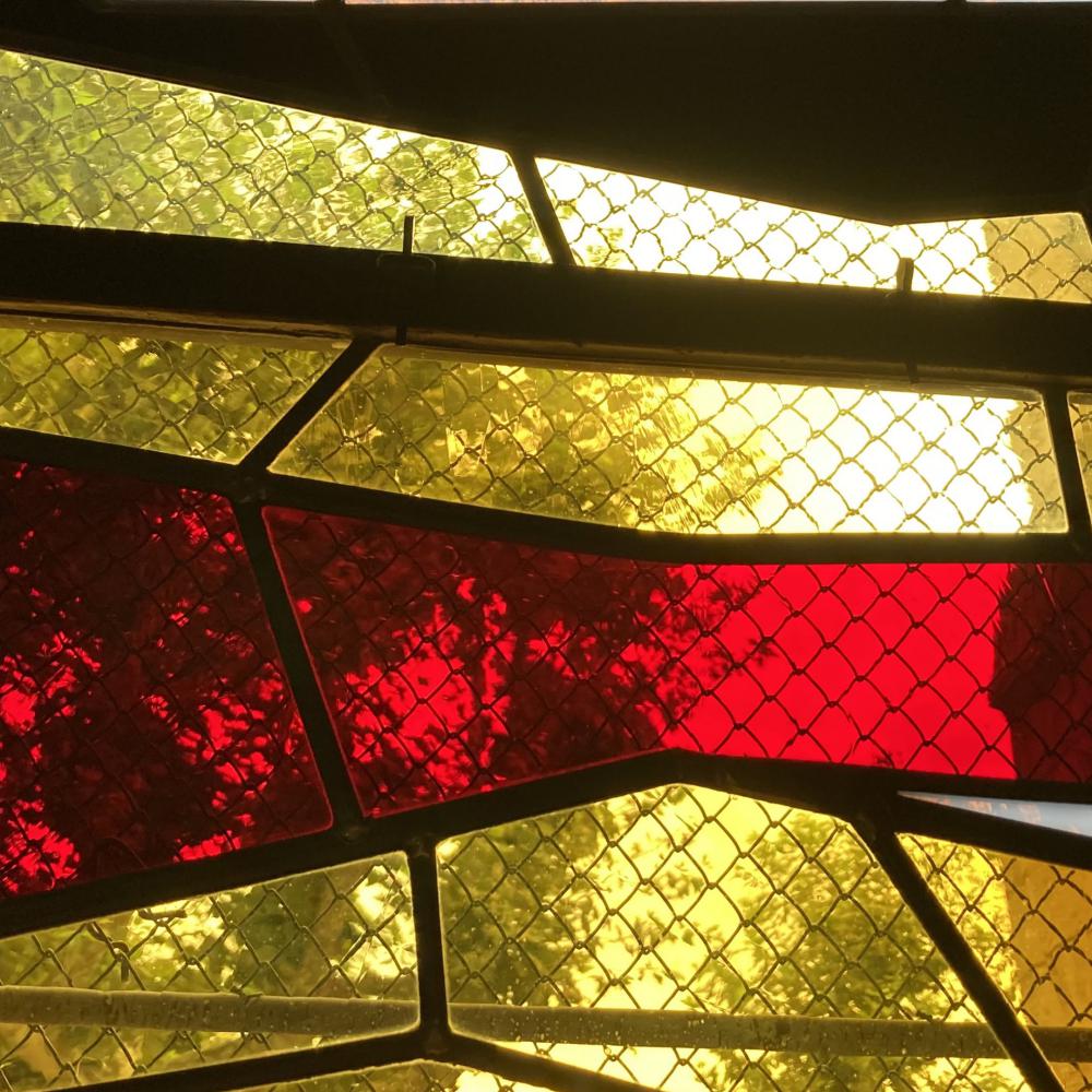 En parfaite continuité cette fois avec les vitraux plus anciens présents dans l’église, j’ai choisi d’utiliser des verres soufflés et colorés dans la masse, porteurs de disparités et bulles naturelles liées à la fabrication, ce qui au final les rendent individuellement tous uniques. Ces verres soufflés jouent ainsi avec la lumière en harmonie avec les vitraux adjacents.