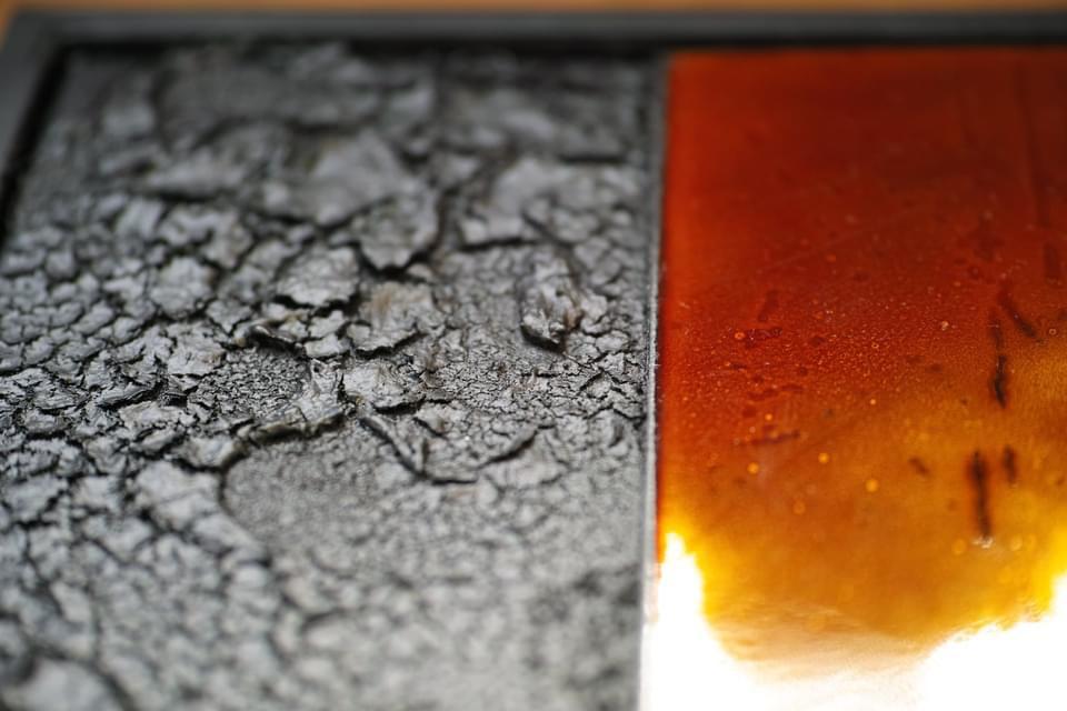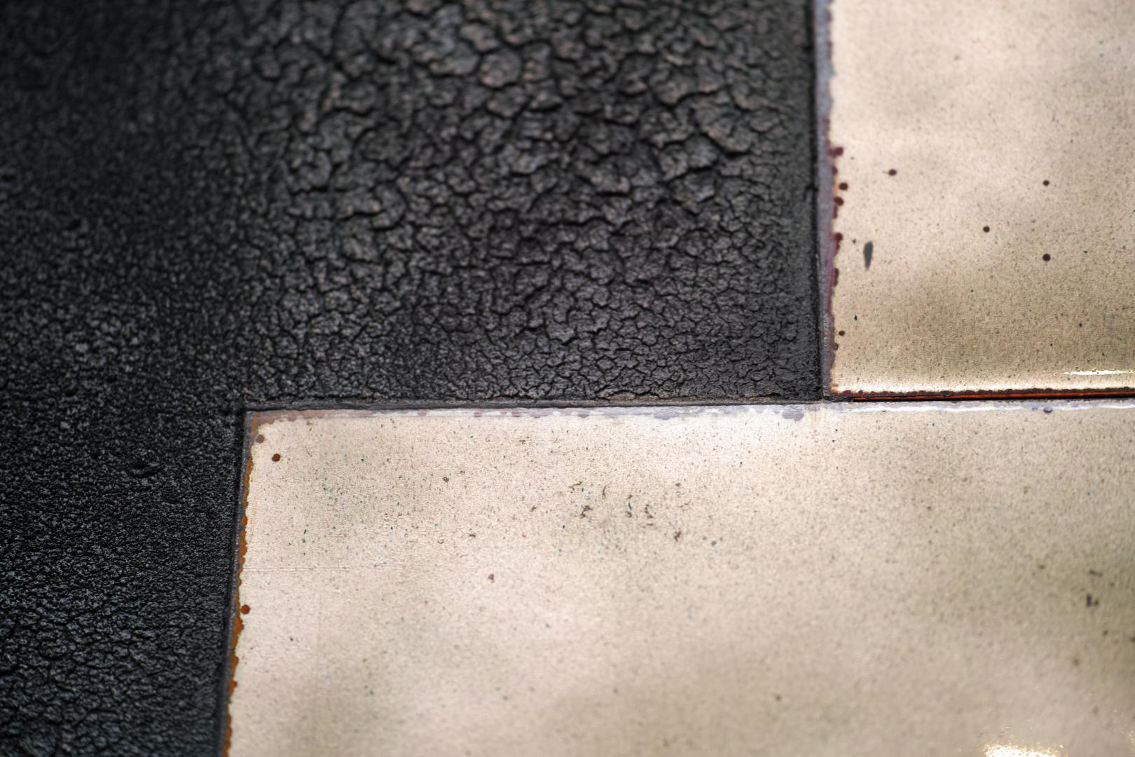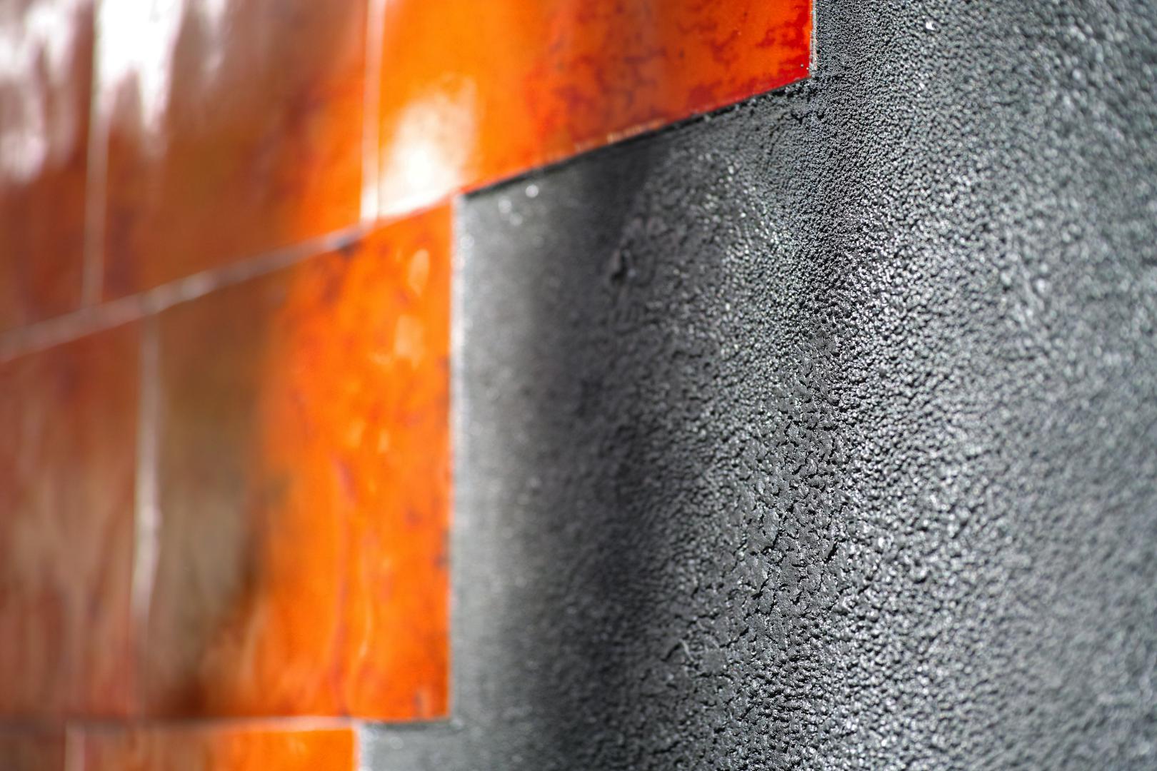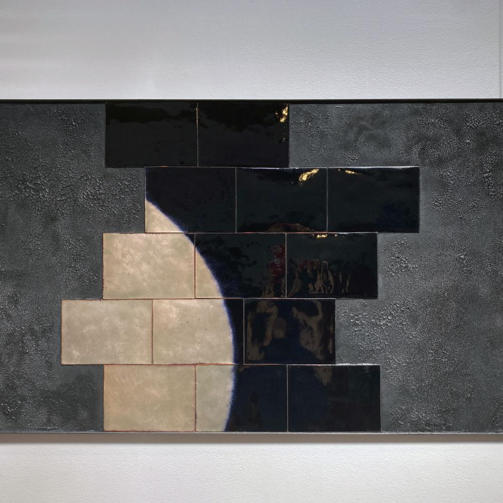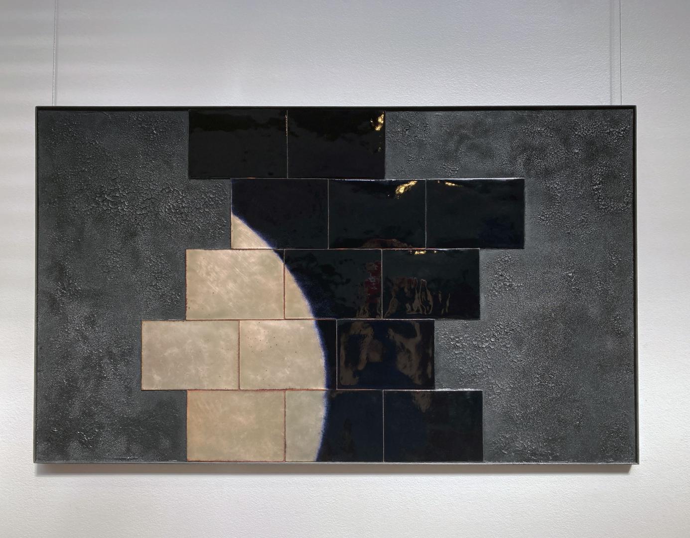 Organisées de manière géométrique, les créations de Christophe Mirande sont plus souvent monochromes, de couleurs rouge, bleu, violet ou encore investies par certain émail jaune d’or. Elles sont sublimées par un mélange de matières hétéroclites telles que l’ardoise, le zinc, le cuivre ou les feuilles d’or permettant de créer une œuvre pleine de contrastes, de luminosité et d’éclat.