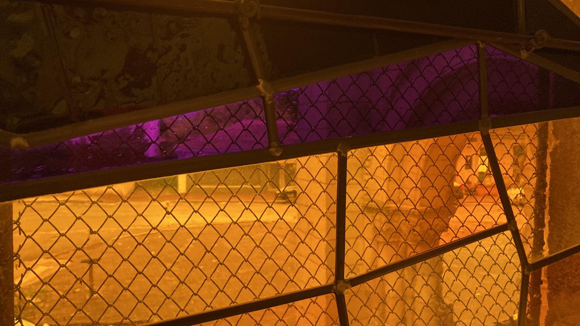 Cette double perception jour/nuit, sur un plan technique, a pu être réalisée grâce à l’inclusion d’éléments émaillés sur cuivre, qui demeurent visibles en pleine journée et qui deviennent des ombres chinoises la nuit.